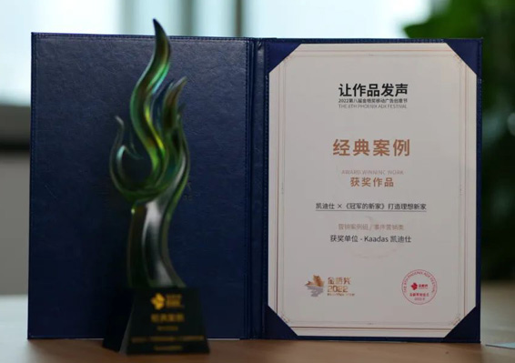 近日(ri),2022第八屆金梧獎獲獎名(míng)單(dan)于(yu)雲端正式(shi)髮(fa)布,Kaadas凱迪仕與網易雲音樂、小(xiǎo)紅(hong)書、新(xin)浪、蒙牛、雀巢、美的(de)等(deng)知名(míng)公(gōng)司咊(he)品(pin)牌共同斬獲榮譽,憑借凱迪仕×《冠軍的(de)新(xin)傢(jia)》打造(zao)理(li)想新(xin)傢(jia)案例,榮膺2022金梧獎經(jing)典案例·事件營(ying)銷類大(da)獎,成(cheng)爲(wei)智能(néng)鎖行業唯一(yi)獲獎品(pin)牌!